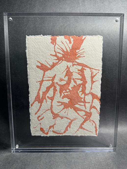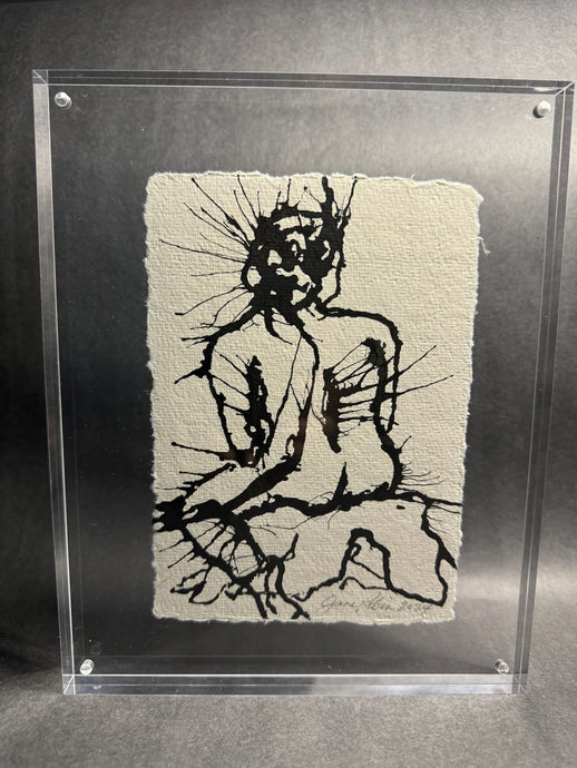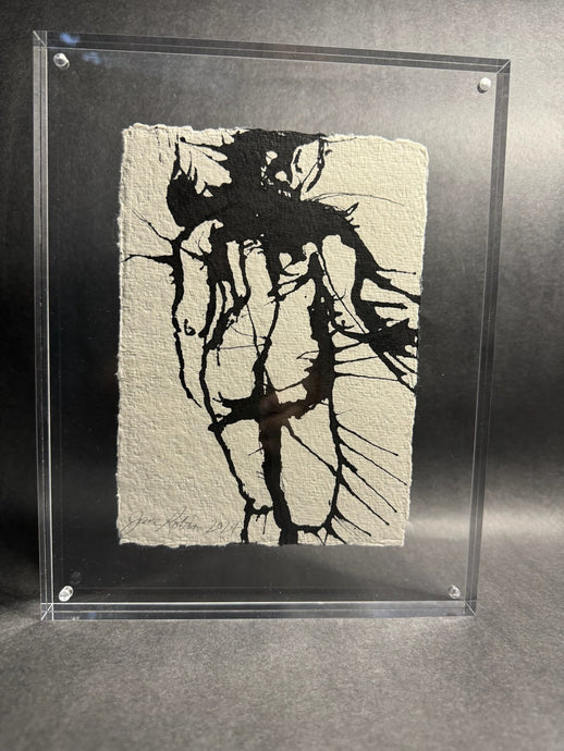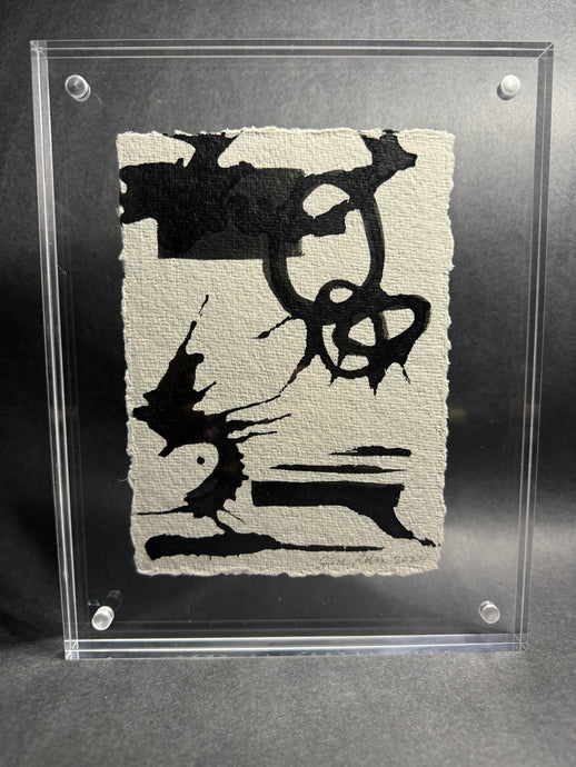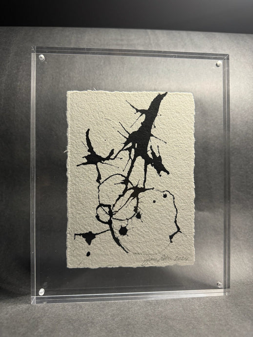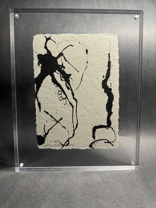 Elevate any shelving display with our chic, modern acrylic frames. Featuring abstract figures and ink blots on artisanal rag paper, these unique pieces make ideal holiday gifts.